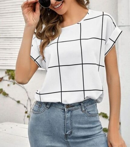 Check Print Drop Shoulder Short Sleeve Shirt Top